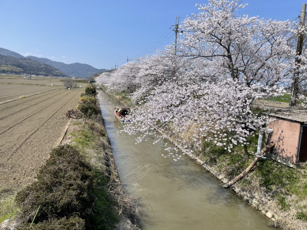 2026年4月3日現在、近江八幡の水郷めぐりエリアでは桜が満開になっています。