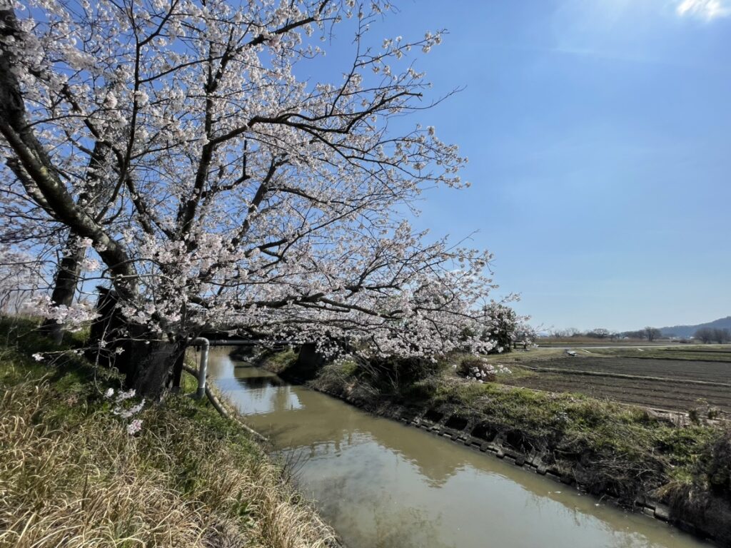 数日前までは「もう少し」といった状態でしたが、一気に開花が進み、水路沿いに並ぶ桜並木がしっかりと咲き揃いました。
